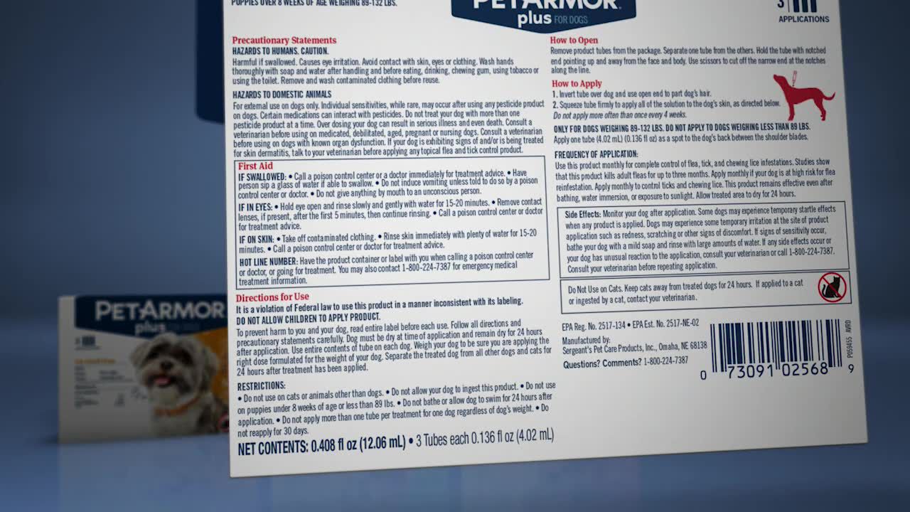 Fipronil can last longer. The EPA terms that as very small compared to the volume of PetArmor Plus sold annually. Does petarmor plus have an expiration date.